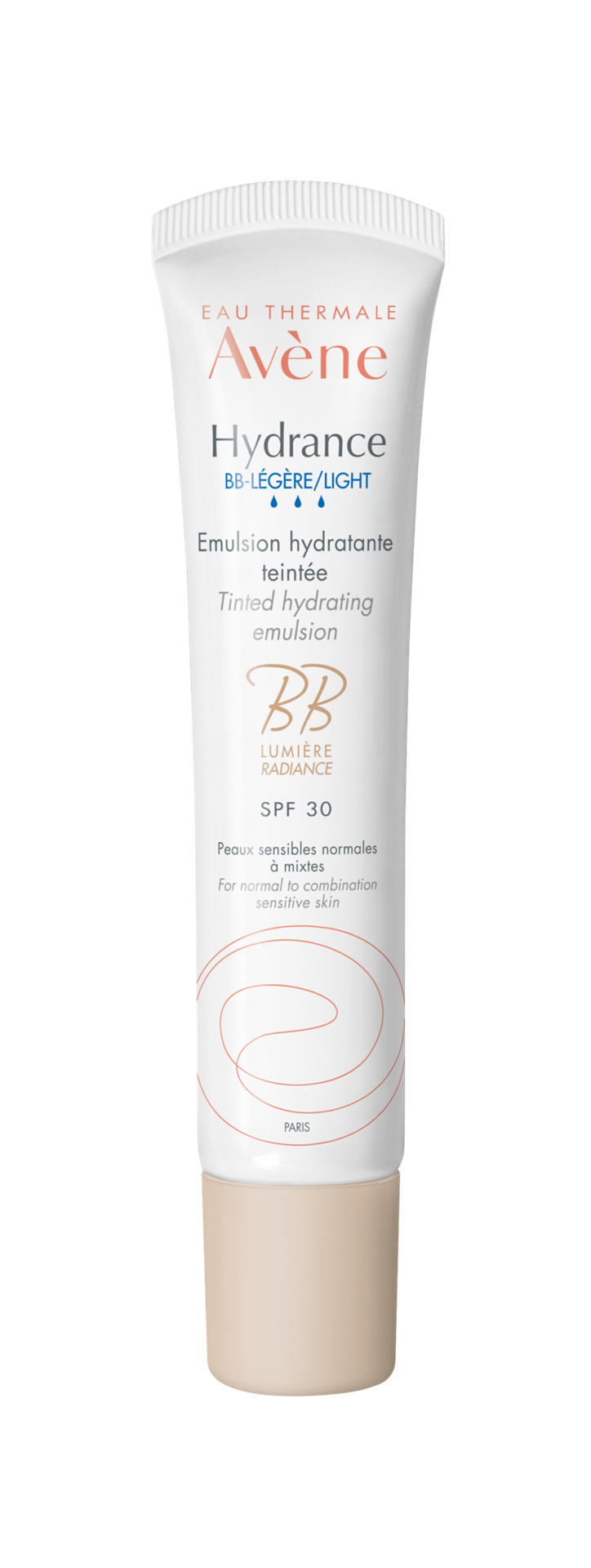 Avène Hydrance BB Light SPF30 er en lett farget fuktighetskrem med SPF 30, som tilfører fukt, jevner ut hudtonen og beskytter huden mot UV-stråler samt påvirkninger utenfra slik som forurensning. Passer til normal og kombinert sensitiv hud. Kremen inneholder CohedermTM og Avène Termalkildevann som gir intensiv fukt ved å stabilisere hudens hydrolipide film, samt gjenopprette hudbarrieren, slik at fordampningen reduseres. Den umiddelbare og langtidsvirkende fukttilførselen sikrer optimal velvære og etterlater huden myk og behagelig. Kremen kamuflerer ujevnheter og gir en naturlig, jevn glød. Passer til de fleste hudtoner. Mild duft.