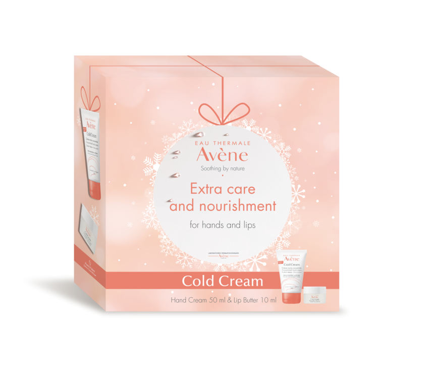 Gavesettet inneholder Cold Cream Håndkrem (50 ml) som fukter, mykgjør og beskytter såre og sprukne hender. Den trekker raskt inn og fetter ikke. Huden blir raskt myk og behagelig. Cold Cream leppebalm (10 ml ) som nærer, reparerer og gir glans til tørre og sprukne lepper. Den myke konsistensen er behagelig å bruke og smelter når den påføres leppene. Begge produktene er testet under svært kalde forhold. Påføres etter behov, så ofte som nødvendig. Med parfyme.