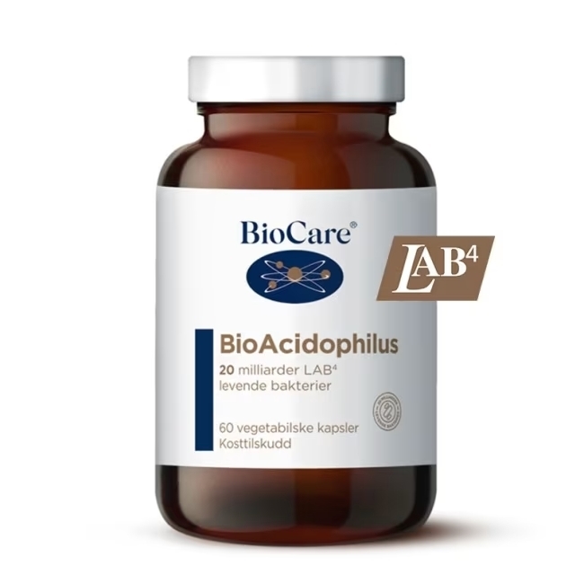 | Ingredienser: Fyllstoff (cellulose), fruktooligosakkarider fra sikorirot, vegetabilsk kapsel (hydroksypropylmetylcellulose), Lactobacillus acidodphilus, antiklumpemiddel (silisiumdioksid, magnesiumsalter av fettsyrer), Bifidobacterium.bifidum, Bifidobacterium lactis. |