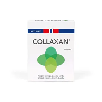 Collaxan er utviklet og produsert i Norge, og er GMO-fri, gluten- og laktosefri. Anbefales ved daglig støtte til ledd, muskler, sener, bindevev, skjelett og cellulær energi. Over 300 000 brukere i Norden har erfart produktets fordel, og 97 % anbefaler det.