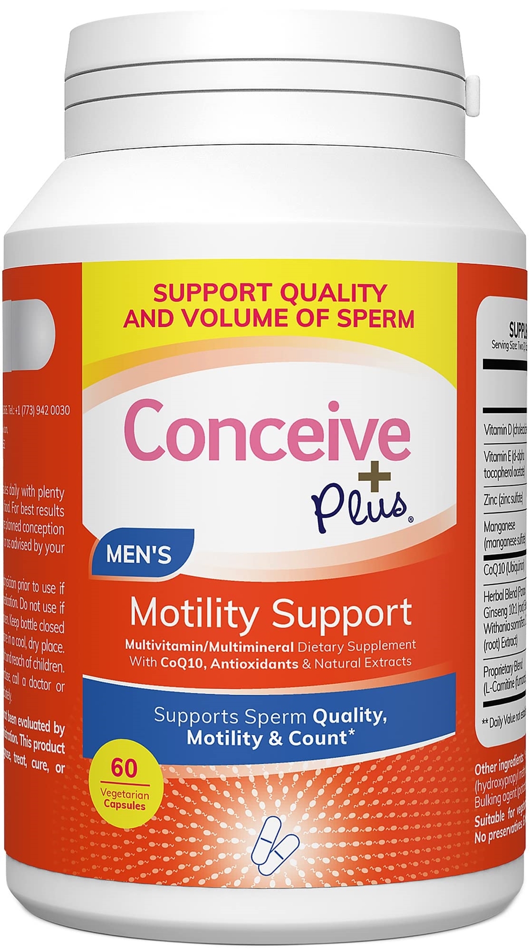 Conceive Plus Man fertilitet Support er spesialutviklet med en kombinasjon av antioksidanter, vitaminer og mineraler for å fremme sæd og bevegelighet. En egenutviklet blanding for å øke sexlysten og støtte mannlig reproduktiv helse.