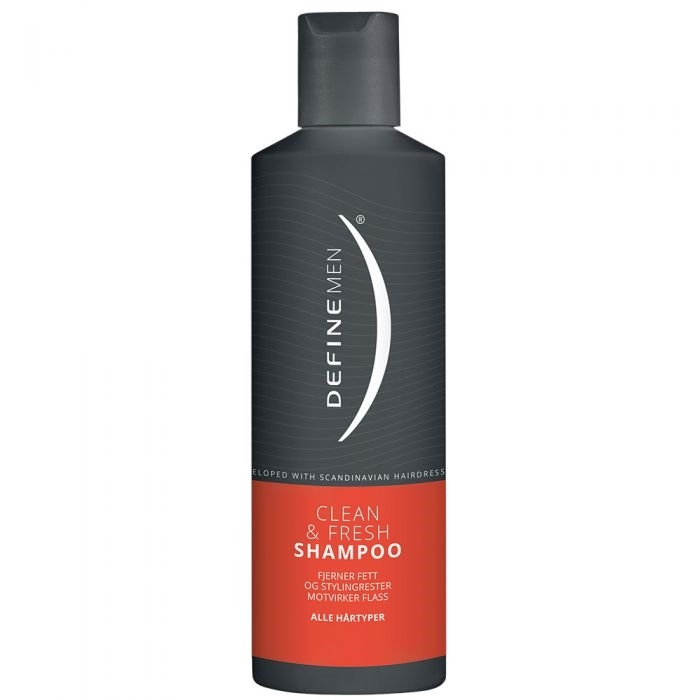 Define Clean & Fresh Shampoo fjerner fett og stylingrester, i tillegg motvirker den flass. Sjampoen renser i dybden og gir pleie til hodebunnen.