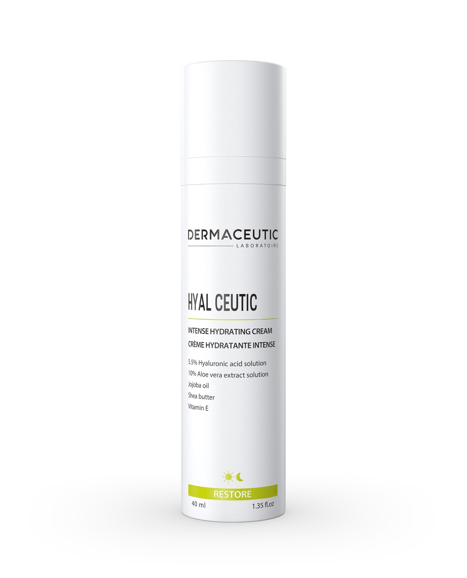 Hyal Ceutic er en 24-timers krem som er svært fuktighetsgivende, reparerende og beskyttende. Har også en plumpende effekt da den inneholder mye hyaluronsyre. Kan også brukes som en krem som opprettholder resultater etter hyaluronsyre-injeksjoner.