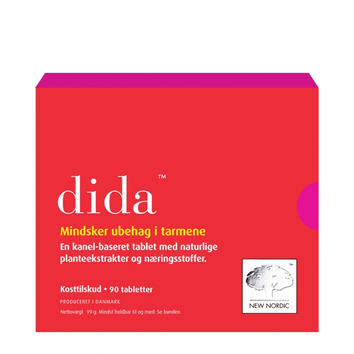 Dida anbefales til personer, som ønsker å redusere gjæring og dannelse av luft i mage-/tarmkanalen. Dette er et godt sammensatt produkt med bioaktive næringsstoffer, samt urte- og krydderoljer som bidrar til å vedlikeholde en normal funksjon av mage-/tarmkanalen og dens slimhinner. Tablettene inneholder carminative oljer fra kanel, fennikel og peppermynte. dida inneholder også tiamin og hvitløk som hjelper med å bevare en mikrobiologisk balanse i fordøyelsessystemet. Niacin bidrar til å opprettholde normale slimhinner.