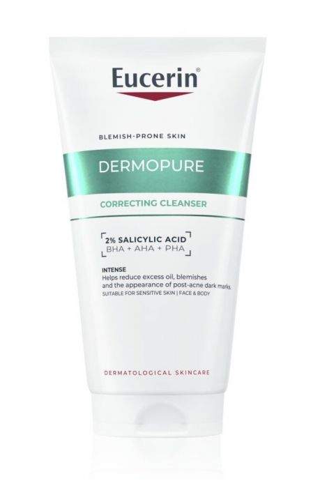 Eucerin DermoPure Correcting Cleanser 150 ml er utviklet spesielt for fet, uren og akneutsatt hud. Den avanserte formelen inneholder ingredienser som bidrar til å redusere talgproduksjon, løse opp tilstopninger og forebygge nye utbrudd. Rensen fjerner effektivt smuss, makeup og overskuddsolje uten å tørke ut huden.