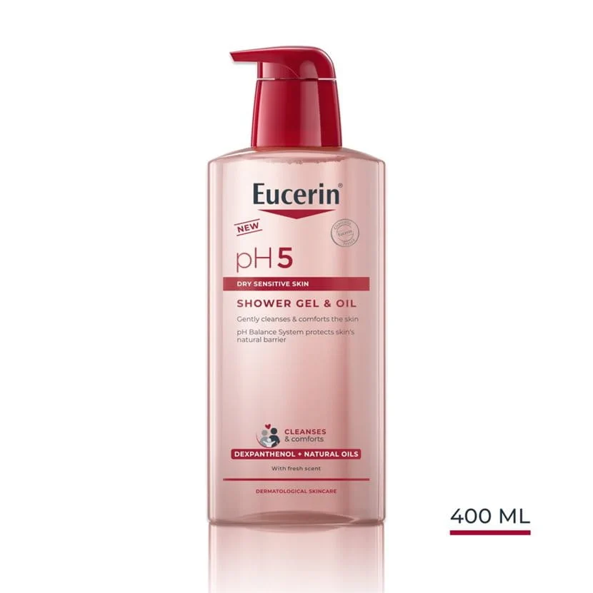 Eucerin pH5 Shower Gel & Oil 400 ml er utviklet for sensitiv og tørr hud som trenger ekstra skånsom rens. Formelen kombinerer mild dusjgel med nærende dusjolje for å bevare hudens naturlige fuktbalanse og styrke hudbarrieren.