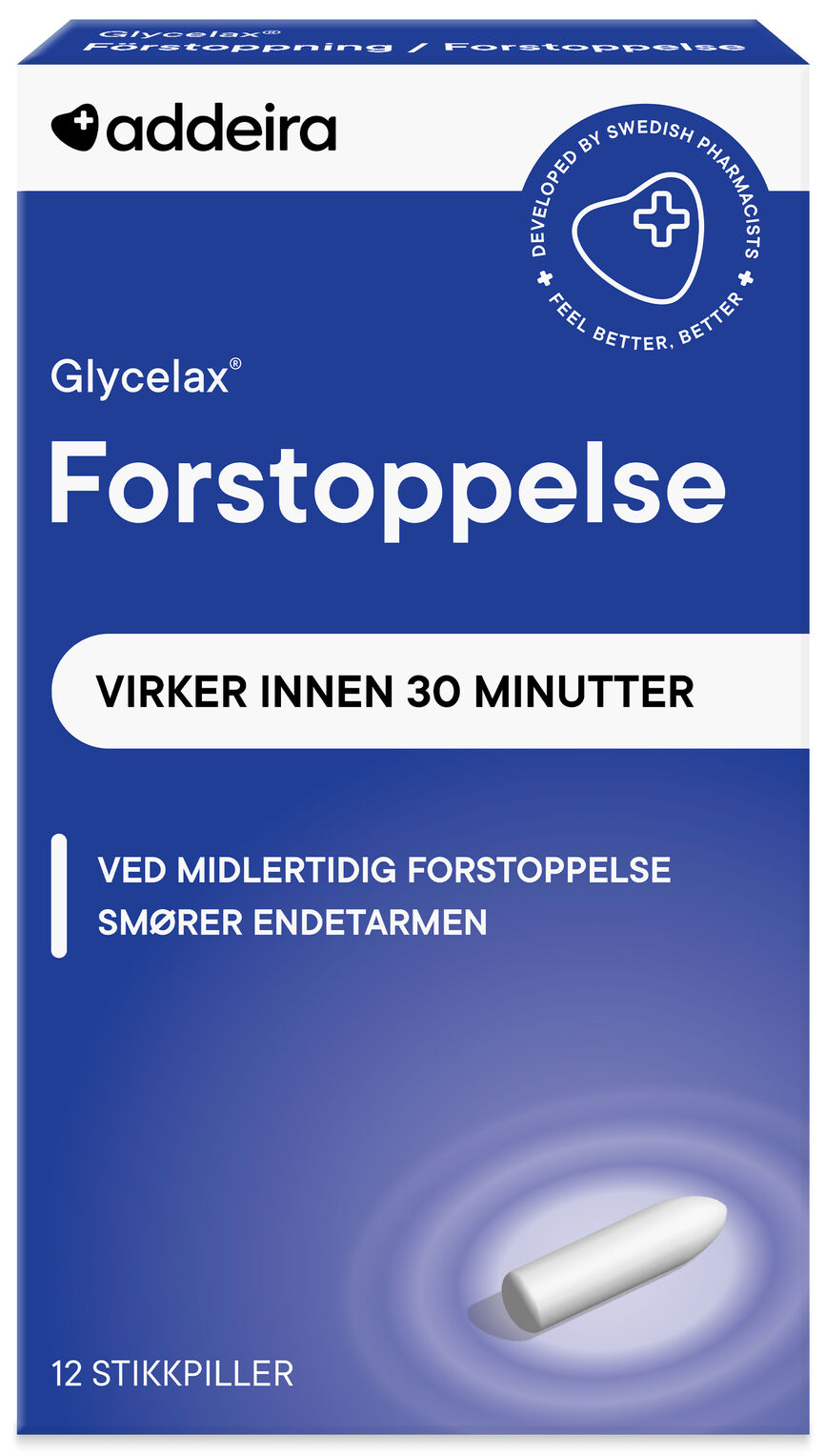 Glycelax Forstoppelse tilbyr en rask og effektiv løsning for alle som opplever midlertidig forstoppelse. Dette produktet inneholder glycerin som den aktive ingrediensen, kjent for sin evne til å irritere tarmen forsiktig, noe som stimulerer tarmbevegelser. Glycerin har også en smørende effekt som letter passasjen av avføring. Natriumstearat fungerer som en emulgator i produktet, mens vann tilføres som et fyllmiddel for å gi stikkpillene den nødvendige konsistensen for enkel administrasjon. For bruk, er det anbefalt å innføre en stikkpille per dag ved symptomer på forstoppelse. Glycelax Forstoppelse er designet for å gi lindring innen maksimalt 30 minutter, og tilbyr samtidig en smørende virkning på endetarmen.