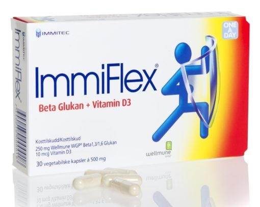 ImmiFlex med Wellmune WGP Betaglukaner aktiverer immunforsvaret. ImmiFlex er det sterkeste Betaglukaner produktet på markedet, med over 80% Wellmune WGP Betaglukaner. ImmiFlex inneholder Wellmune WGP Betaglukaner (Beta 1,3/1,6 Gluco Polysaccharide) og Vitamin D, som begge er kjent for å være godt for immunforsvaret. ImmiFlex representerer dermed en helt ny måte å styrke immunforsvaret på, men utgangspunktet er faktisk flere tusen år gammelt.