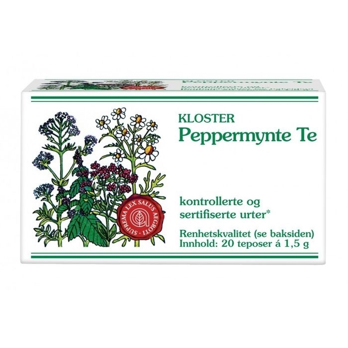Kloster Peppermynte te er god ved forkjølelse og betennelser i hals og svelg. Den kan også være god ved kramper og smerter i magen, og kan virke dempende på oppblåsthet og luftdannelser.