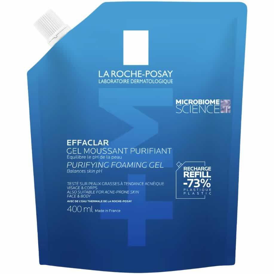 Effaclar Cleansing Gel +M Refill 400 ml gir deg den samme effektive og skånsomme rensen – nå i en mer bærekraftig refill‑løsning. Formelen er utviklet med M‑teknologi (Micro‑exfoliating + Mattifying) som hjelper med å løse opp talg, rense porene og redusere glans uten å irritere huden.