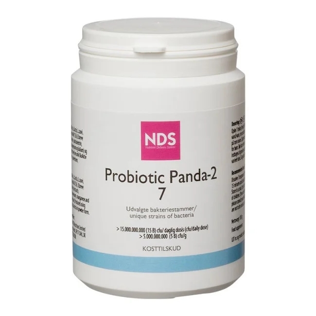 NDS Probiotic Panda-2 er et kosttilskudd med melkesyrebakterier i pulverform fra utvalgte bakteriestammer. Panda 2 består av 7 utvalgte stammer med melkesyrebakterier. Hver anbefalte døgndose gir 15 milliarder melkesyrebakterier. NDS Panda 2 er produsert med Bio-Aktiv teknologi.