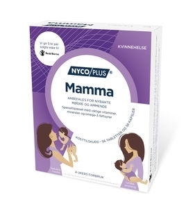Nycoplus Mamma Tabletter + Kapsler er et nøye sammensatt kosttilskudd utviklet for å dekke behovene til kvinner før, under og etter graviditet. Produktet kombinerer multivitaminer og mineraler i tablettform med omega‑3‑kapsler som inneholder DHA – et viktig næringsstoff for normal utvikling av fosterets hjerne og syn.