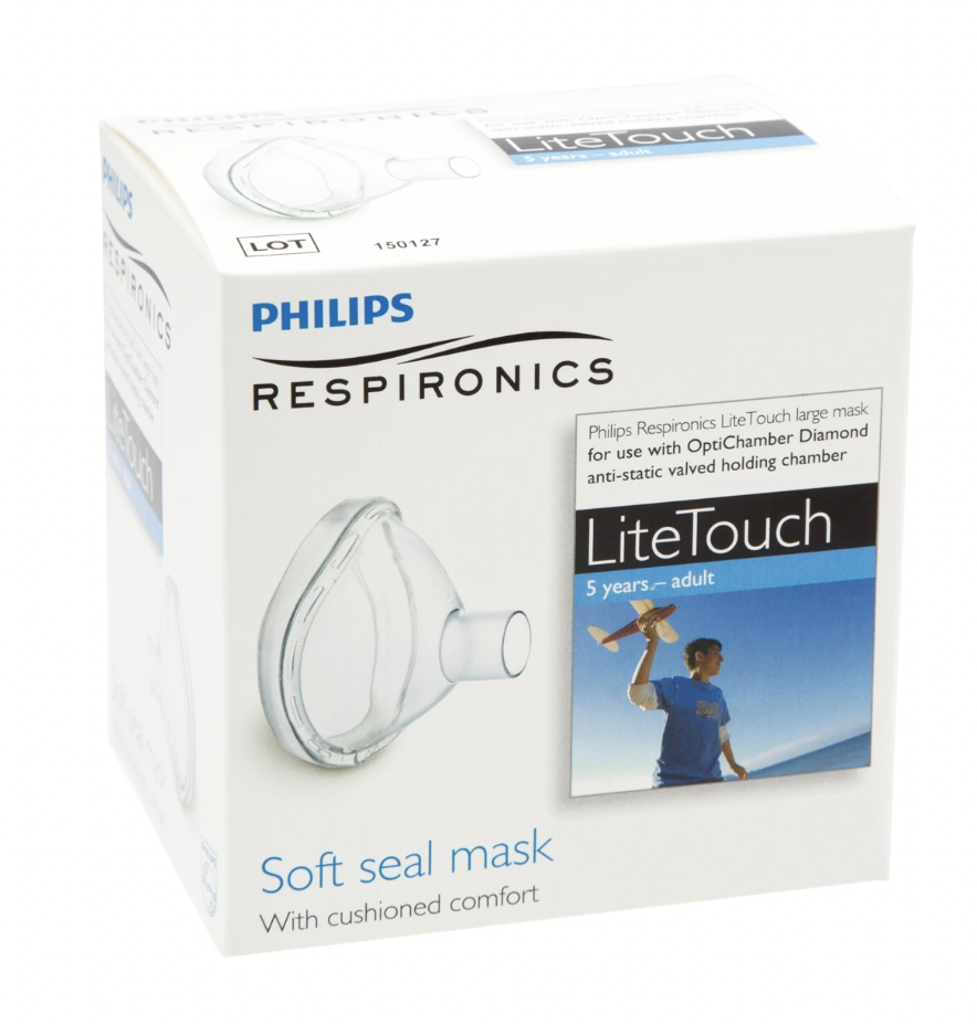 Optichamber Diamond maske Lbrukes sammen med inhalasjonskammer for å bedre effekt av din inhalasjonsmedisin. Masken har god passform og holder seg tett, selv ved lite trykk og gir liten DSV (Dead Space Volume). Masken passer også til andre inhalasjonskammere, forstøverapparater og PEP utstyr. Optichamber Diamond maske L anbefales til barn og voksne fra 5 år.