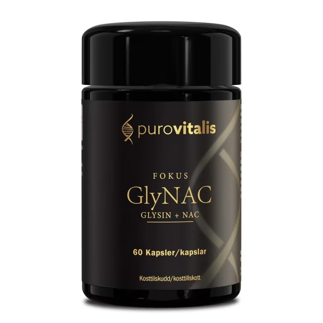 PuroVitalis GlyNAC (60 kapsler) er et høykvalitets kosttilskudd basert på den vitenskapelig anerkjente GlyNAC®‑kombinasjonen, som består av aminosyrene glysin og N‑acetylcystein (NAC). Sammen fungerer disse som forløpere til glutation, kroppens viktigste intracellulære antioksidant.