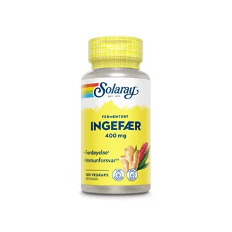 Solaray Fermentert Ingefær 400 mg inneholder fermentert ingefærrot, en prosess som gjør plantestoffene mer biotilgjengelige og skånsomme for magen. Ingefær er tradisjonelt brukt for å støtte fordøyelsen, bidra til normal magesyklus, og gi naturlig antioksidantbeskyttelse.