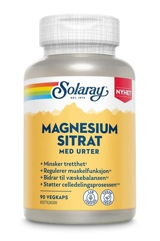 Solaray Magnesium Sitrat 90 kapsler inneholder organisk magnesium bundet til sitronsyre (magnesiumsitrat) – en form som gir svært godt opptak i kroppen. Produktet er utviklet for å støtte energi, muskelfunksjon, nervesystem og elektrolyttbalanse, og er tilsatt en urteblanding for ytterligere effekt.