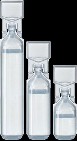Plastampulle av polyetylen med luer-lock kobling. Kan brukes med sprøyte type luer-lock og luer-slip. Injeksjonsvæske sterilt vann.