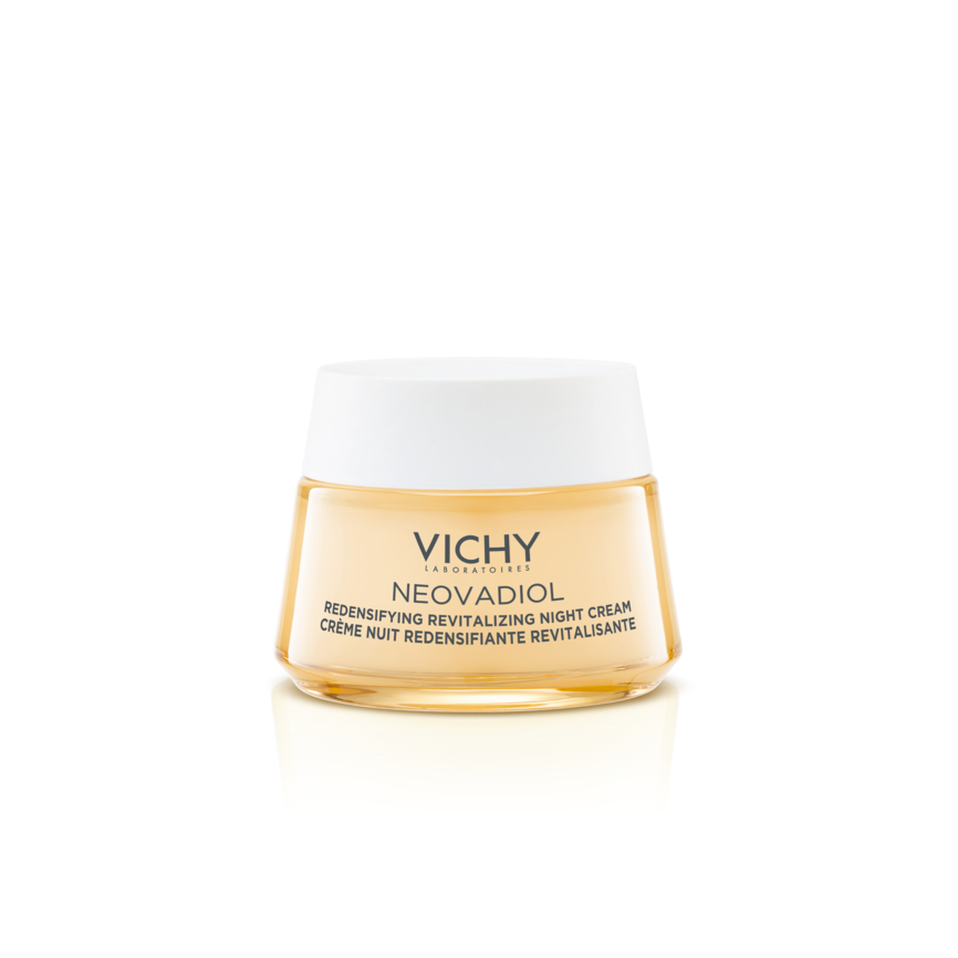 Vichy Neovadiol Redensifying Revitalizing Night Cream er en avansert nattkrem utviklet for moden hud i overgangsalderen. Hormonelle endringer og redusert østrogen påvirker hudens tetthet, kontur og glød – og denne nattkremen jobber målrettet for å gjenopprette hudens volum og fasthet mens du sover.