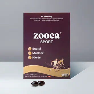 Zooca® Sport er et unikt omega-3 produkt basert på over 20 års forskning på Zooca® Original som inneholder flere viktige fettsyrer enn vanlig omega-3produkter, og gir et høyere opptak av essensielle omega-3 fettsyrer. Zooca® Sport er med sine omega-3 fettsyrer, magnesium og sink, godt for hjerte, hjernen, synet, musklene, beinbygningen og immunsystemet. Dette er et omega-3 tilskudd som henter omega-3 fra en av verdens største og mest bærekraftige kilder. Det spennende med Zooca er den unike sammensetningen av næringsstoffer. Her får du omega-3, samt andre umettede fettsyrer fra zooplanktonet Calanus finmarchicus, eller Raudåte som det heter på norsk. Dette zooplanktonet er selve opphavet til nesten all omega-3 i havet. Omega-3 oljen er så ren at den kan brukes uten at den trenger å raffineres eller renses. På den måten blir alle næringsstoffene bevart. Oljen inneholder naturlig astaxantin som gjør at man ikke trenger å tilsette konserveringsmiddel. I tillegg inneholder Zooca® Sport vitamin D3, B5 og B6 samt mineralene magnesium, selen og sink. Dette er næringsstoffer man trenger ved trening og restitusjon.